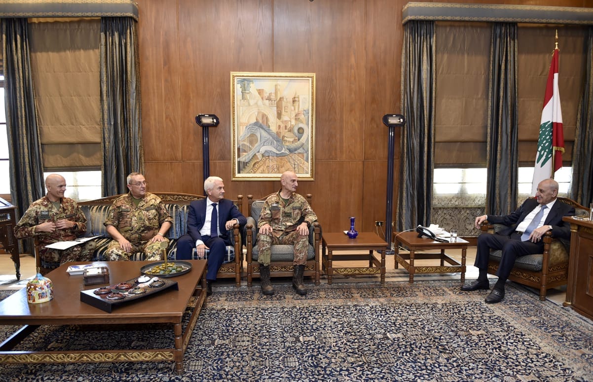 الرئيس بري استقبل بعد الظهر رئيس اركان الجيش الايطالي رئيس أركان الجيش الإيطالي الجنرال Luciano Portolano والوفد العسكري المرافق بحضور السفير الإيطالي لدى لبنان Fabrizio Marcelli والمستشار الاعلامي للرئيس بري علي حمدان حيث تناول اللقاء البحث بتطورات الاوضاع العامة والمستجدات الميدانية