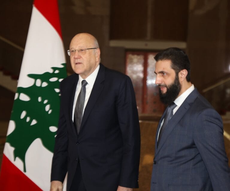 وعقد الرئيس ميقاتي والسيد الشرع مؤتمرا صحافيا مشتركا في ختام المحادثات، فقال السيد الشرع : “بداية نرحب بدولة الرئيس نجيب ميقاتي في دمشق ونبارك كذلك لفخامة الرئيس جوزيف عون على تسلمه الرئاسة حديثا،ونسأل الله له التوفيق في الايام المقبلة. تحدثنا مع دولة الرئيس عن مسائل متعددة تحكم العلاقة بين سوريا ولبنان وتؤسس لمرحلة جديدة من تاريخ العلاقة بين سوريا ولبنان.ونرجو من الشعب اللبناني ان يصرف عن نفسه ذهنية العلاقة السورية السابقة في لبنان وما تبعها من علاقات سلبية ادت الى ضرر على مستوى الشعبين اللبناني والسوري، ونعطي فرصة لانفسنا وللشعبين اللبناني والسوري ايضا، لان نبني علاقة ايجابية مبنية على احترام الدولتين وعلى سيادة لبنان وسوريا ان شاء الله ستقف على مسافة واحدة من الجميع هناك ونحاول ان نعالج كل المشكلات والتفاصيل من خلال التشاور والحوار.