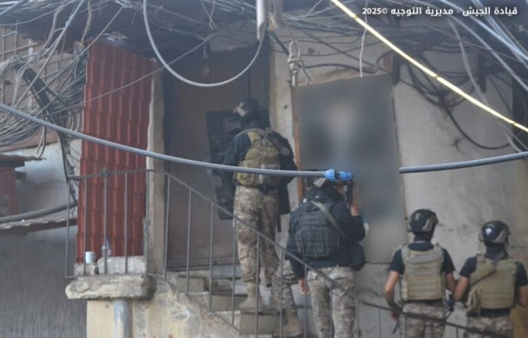 بتاريخ 19 / 9 / 2025، بعد عملية رصد ومتابعة أمنية متواصلة خلال الأشهر الماضية، نفذت وحدات من الجيش تؤازرها مجموعة من مديرية المخابرات في مخيم شاتيلا عملية دهم نوعية لمستودع رئيسي تستخدمه إحدى العصابات لتخزين المواد المخدرة، ومنشأة مخصصة لترويج هذه المواد على نطاق واسع في مناطق مختلفة، واشتبكت مع مطلوبين ما أدّى إلى إصابة عدد منهم، وأوقفت ٥٥ شخصًا، بينهم لبنانيون وسوريون وفلسطينيون، وضبطت كمية كبيرة من المخدرات، إضافة إلى أسلحة وذخائر حربية.