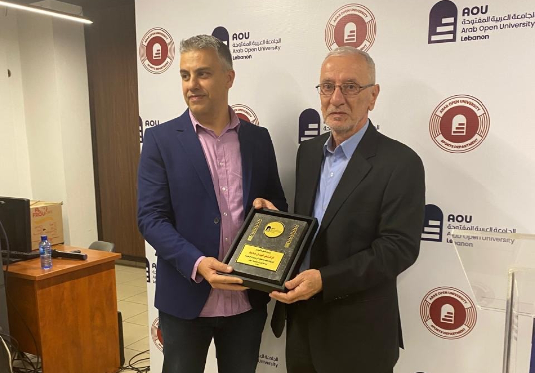- درع تكريمي لمندوب الوكالة الوطنية نبيل ماجد من الجامعة العربية المفتوحة في افتتاح العام الرياضي
