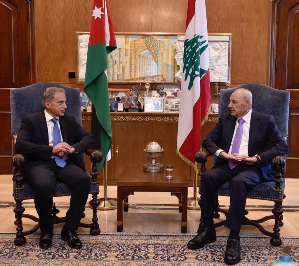 الرئيس بري تابع تطورات الاوضاع في لبنان والمنطقة خلال لقائه رئيس الحكومة الاردنية جعفر حسان والوفد المرافق ، واستقبل الموفد السعودي الامير يزيد بن فرحان ، ورئيس واعضاء إدارة المنطقة الاقتصادية الخاصة في طرابلس ، والنائب هاغوب بقرادونيان .