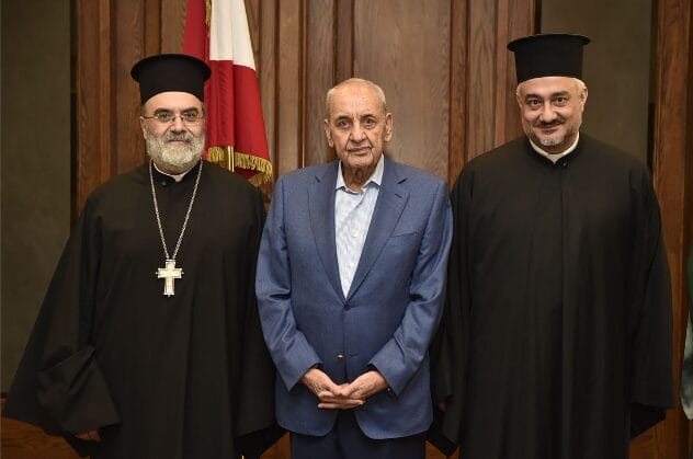 كما عرض الرئيس بري الاوضاع العامة وشؤونا وطنية خلال استقباله الاب الياس شتوي والخوري وديع نعمة .