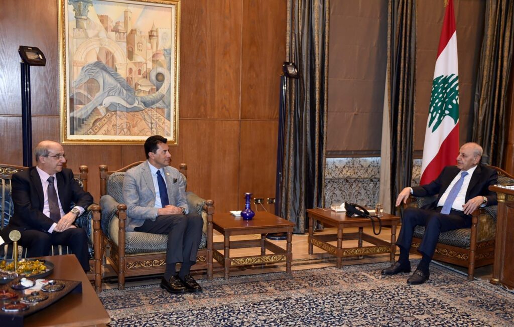 وزير الشباب والرياضة المصري أشرف صبحي : أتشرف بأن اكون بزيارة لرمز عربي كبير دولة الرئيس نبيه بري الذي نشكره جداً لرؤيته ودعمه المستمر .