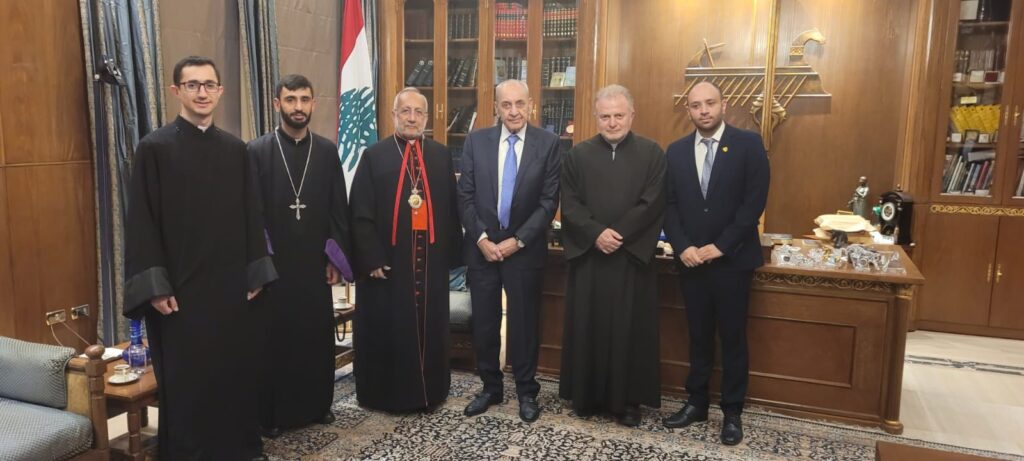 الرئيس بري إستقبل أيضاً البطريرك روفائيل بيدروس الحادي والعشرون ميناسيان كاثوليكوس بيت كيليكيا للأرمن الكاثوليك بحضور المونسنيور ناريك منويان أمين سر صاحب الغبطة ، الاب رافي أوهانيسيان، الأب أرام ابراهاميان، ومسؤول العلاقات العامة في البطريركية شربل بسطوري .